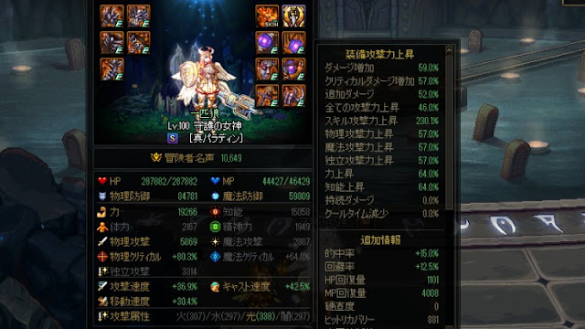 追加ダメージのみ12%あるのは、特定種族への3%追加ダメと状態異常に対する3%追加ダメの計4箇所が、本来であれば特定条件下でのみ発動する追加ダメージだが、街ステータス上は加算表示されているらしい。